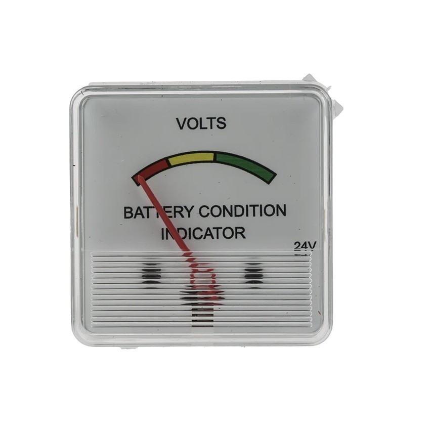 Voltmètre à aiguille et zone de couleur (vert-orange-rouge) pour indication du niveau de charge des batteries.